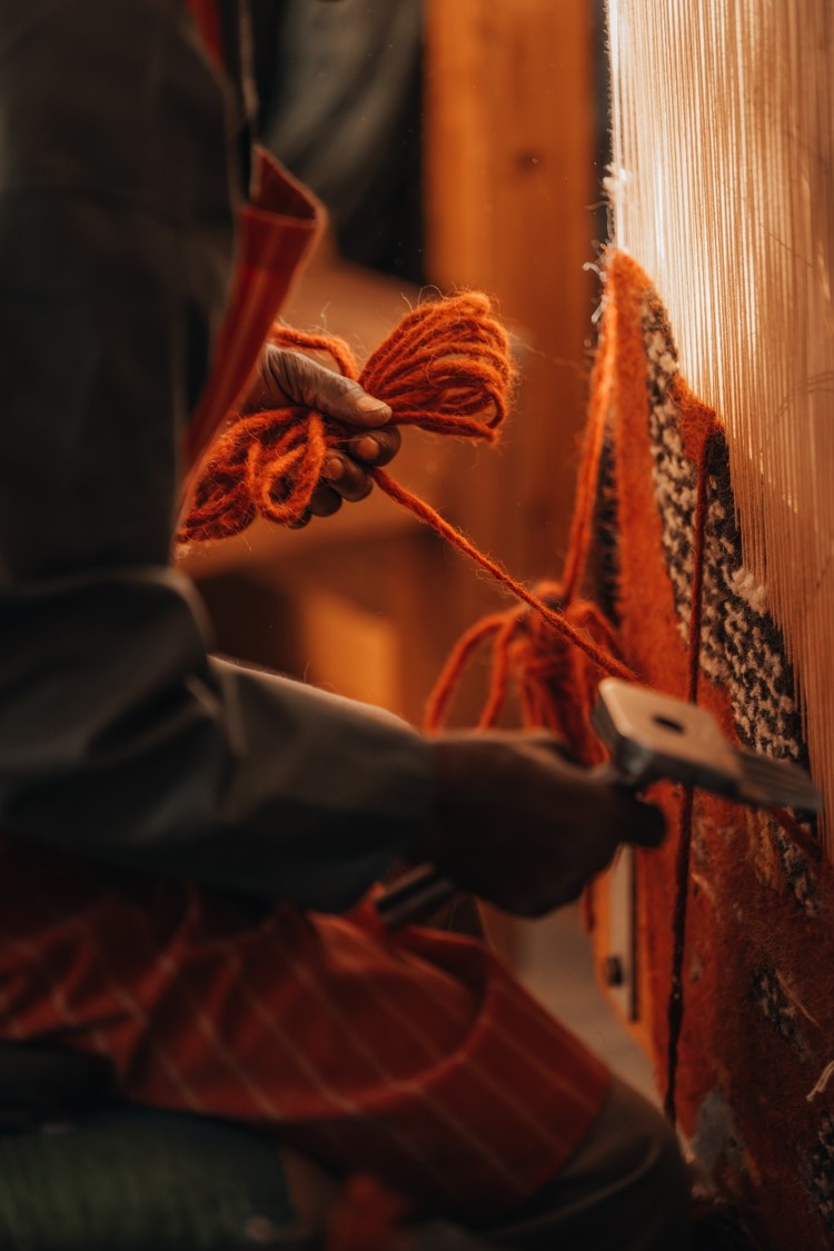 After spinning the wool, our skilled weavers craft exquisite rugs. These beautiful rugs are available for purchase at Kiripotib Guestfarm and our retail locations in Windhoek and Swakopmund. At African Kirikara, professional weavers are trained, who in turn pass on their knowledge to new apprentices. This sustainable education model forms the backbone of African Kirikara's ethos. By establishing this principle of sustainable education, we aim to counteract the shortage of training opportunities in Namibia. We are committed to empowering the local community through education and employment opportunities.